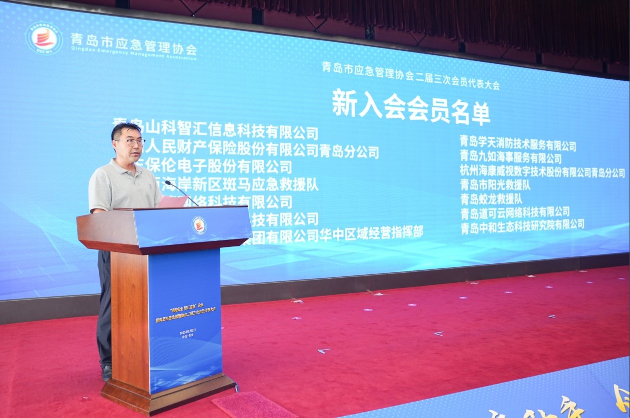 在“鏈動安全、智匯應急”論壇上,青島市委常委、副市長耿濤表示,安全是青島發展的前提,要以數字賦能為核心,構建城市安全風險“智能大腦”;他希望青島市應急管理協會要繼續發揮好橋梁紐帶作用,推動產業共治、市場引領。